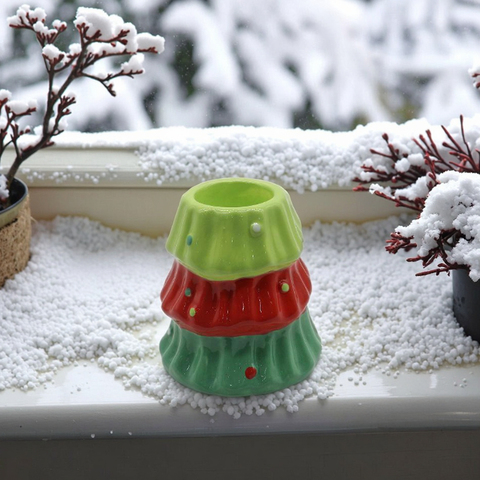 Tira colorida hecha a mano 3D forma de árbol de Navidad luz LED portavelas de cerámica para decoración del hogar