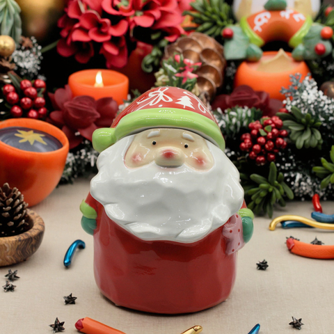 Decoración del hogar hecha a mano Almacenamiento de Papá Noel Vela de cerámica Olla Tarro de Navidad con tapa